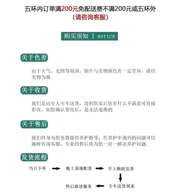 5、北京市六环外的配送请电话咨询。