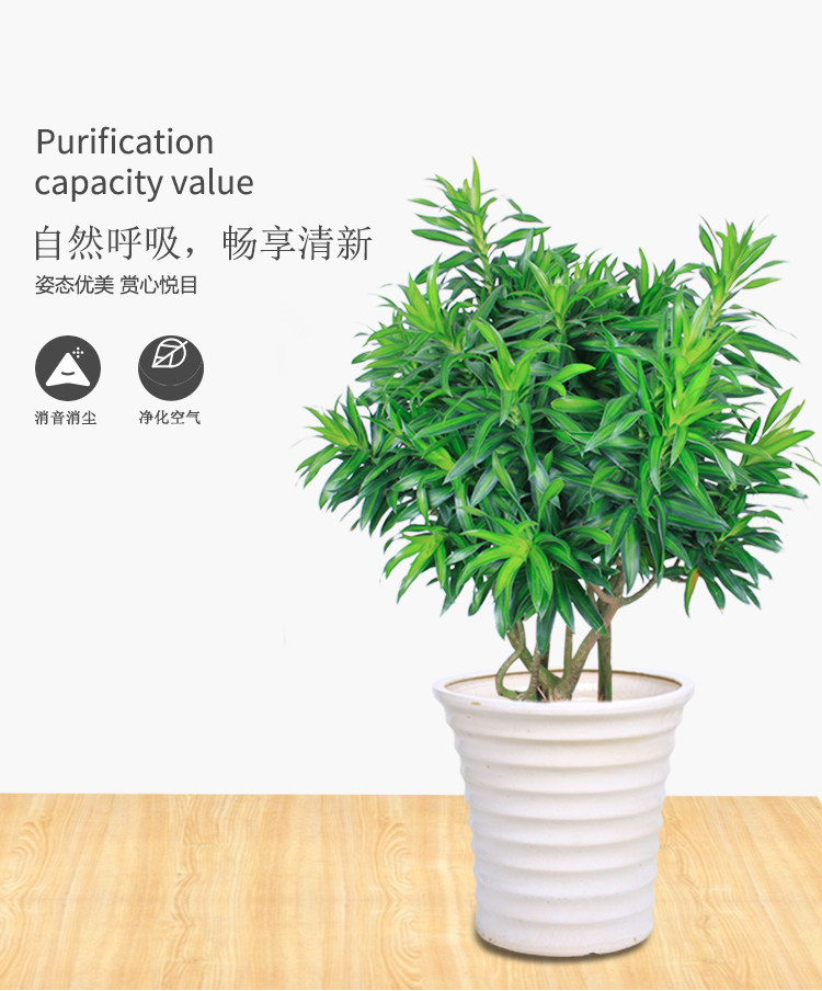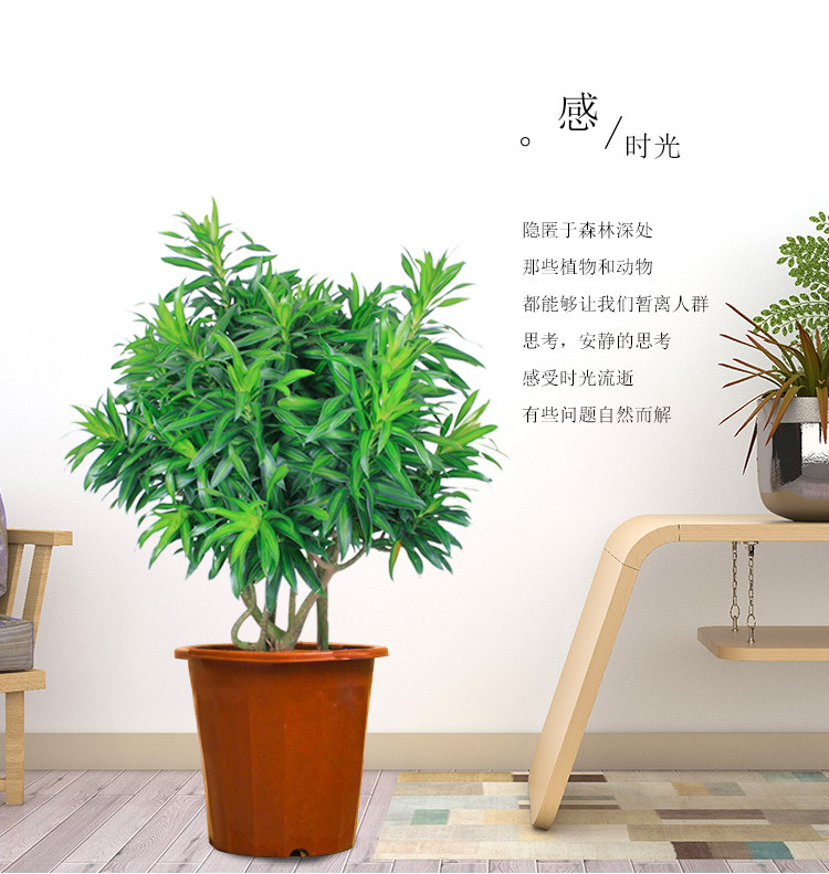 1、大型植物、中型植物和部分小型植物均采用套盆形式,即内部为红塑料盆,外部为瓷盆。这样的套盆形式使绿植成活率更高。