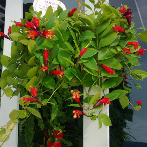口 红花性喜温暖而明亮光照的半阴环境。光照不足,容易造成枝条徒长且不易开花;光照过强,叶片会变成红褐色。家庭莳养的口红花,适宜吊挂在距南窗1米左右 的地方。盆栽用土以微酸性为好,可用泥炭土、砂和蛭石配制成的盆栽培养土,并加入适量过磷酸钙。口红花在平时需肥量较少,上盆时可加入适量牲畜蹄角片和碎 骨块作基肥,可使其生长良好。炎夏,可将其置于室外荫棚下或树荫下通风处,遮光度在50%左右;住楼房的人家,可把盆挂在阳台的棚架下,其上用竹帘遮荫, 或把盆吊挂在向南的门窗里侧散射光照充足处。口红花在生长旺盛期,可15~20天施一次腐熟的有机肥液,盆土宜经常保持湿润状态,切忌盆内积水,以免引起 根系腐烂。秋季天气逐渐凉冷,要逐渐减少浇水量和施肥量。冬季盆土宜稍干燥,除在孕蕾开花前适当施些含磷稍多的肥液以外,一般情况下应少施肥或不施肥。